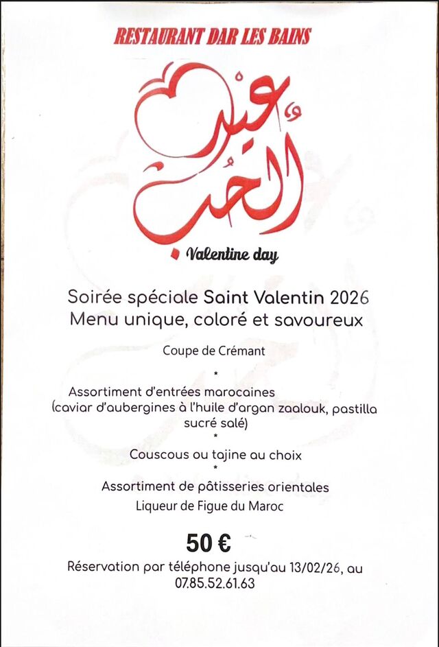 Le restaurant DAR LES BAINS sera exceptionnellement fermé les midis SEULEMENT les mardis 14 et 21 octobre et mercredis 15 et 22 octobre.
